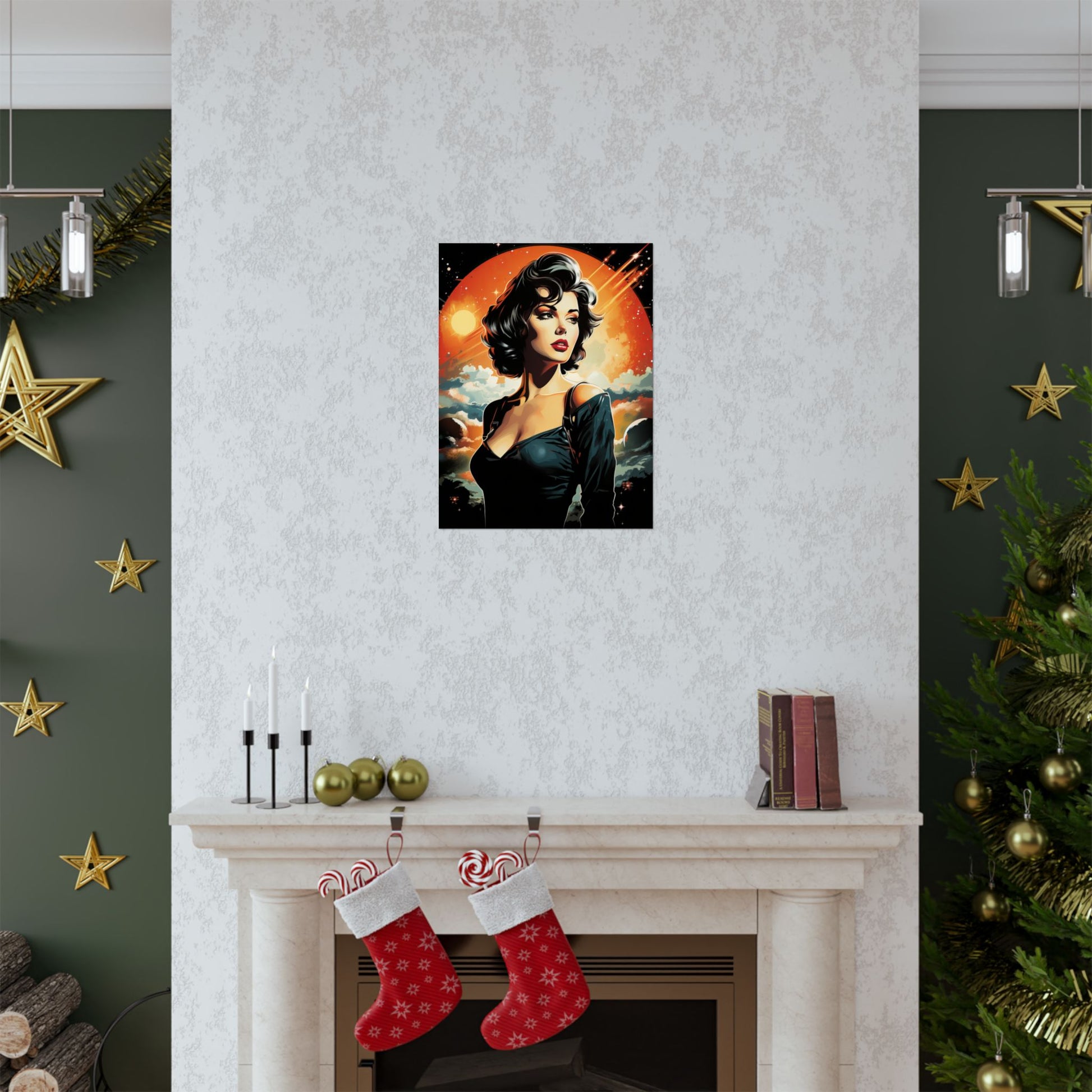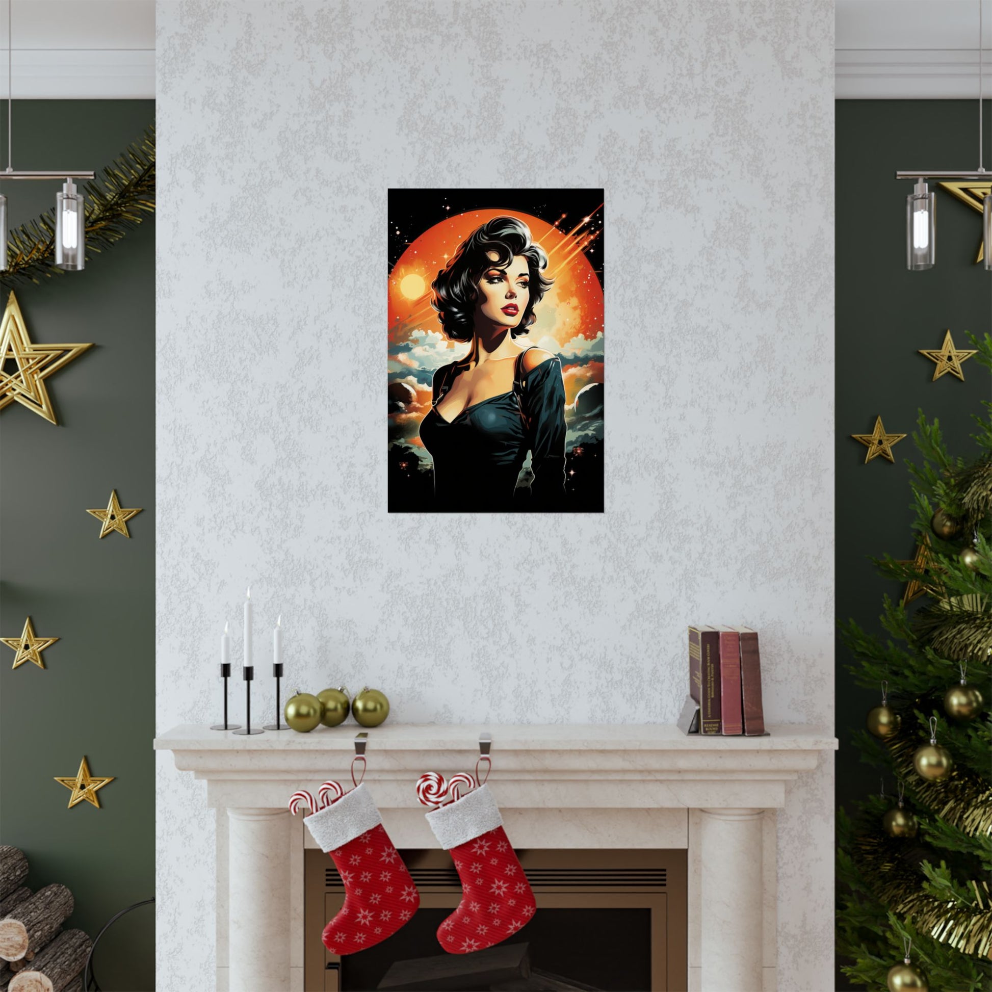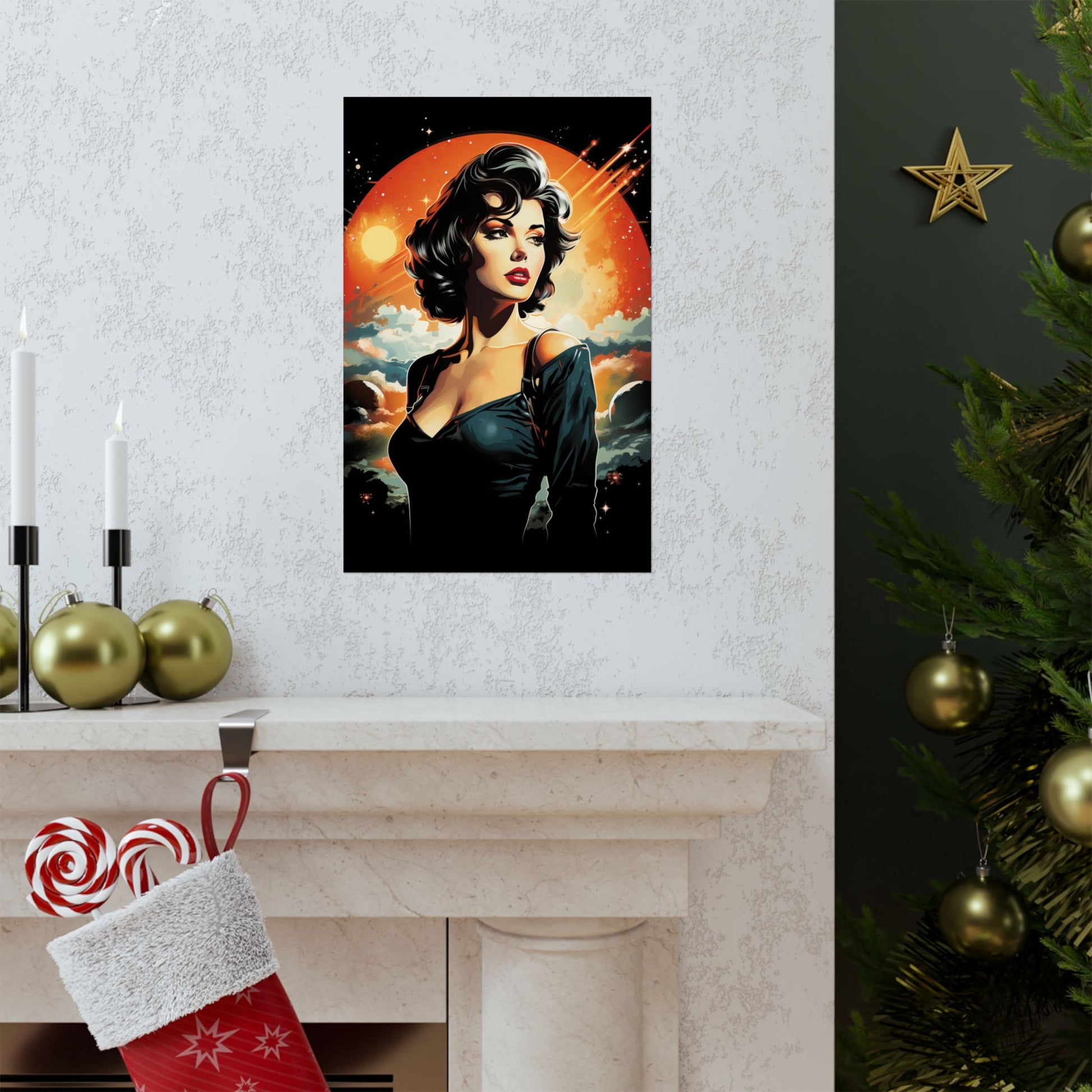 Available in multiple sizes, this space girl art print makes a fantastic gift for space lovers, sci-fi geeks, and anyone with a love for retro-style artwork.
